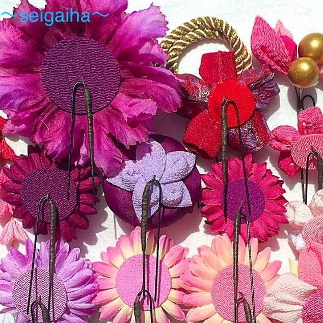 スワロ成人式髪飾り-73赤紫系 全14点