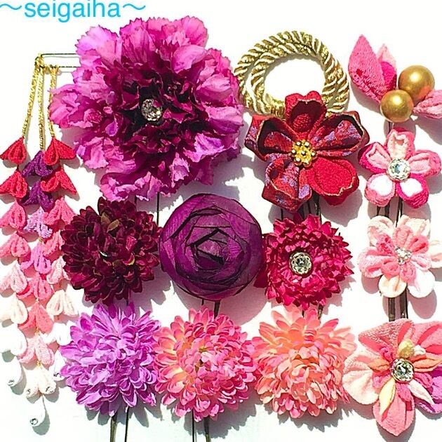 スワロ成人式髪飾り-73赤紫系 全14点の商品説明
