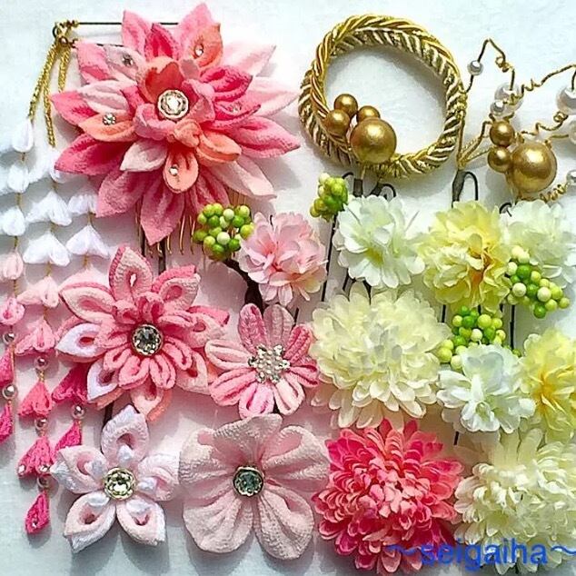 つまみ細工など和風パーツを外しピンポンマムだけでフレキシブルにお使いいただけます。