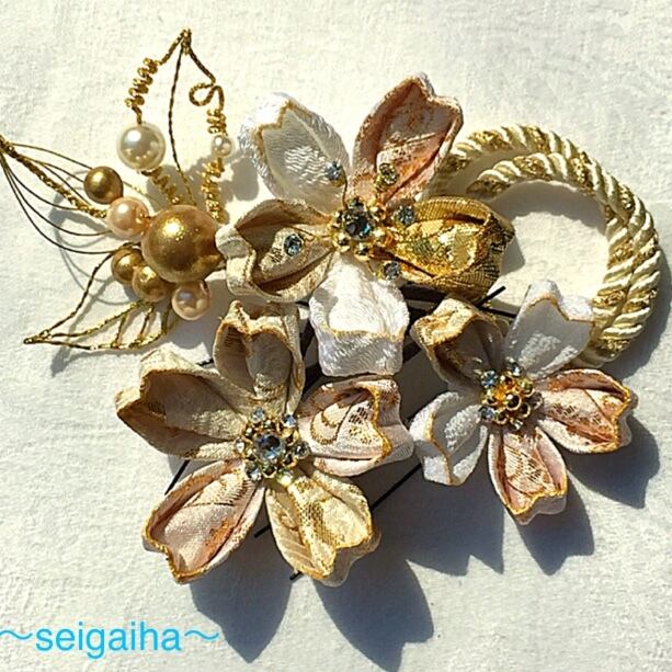 スワロ金襴桜✨髪飾り-96白×金の商品説明