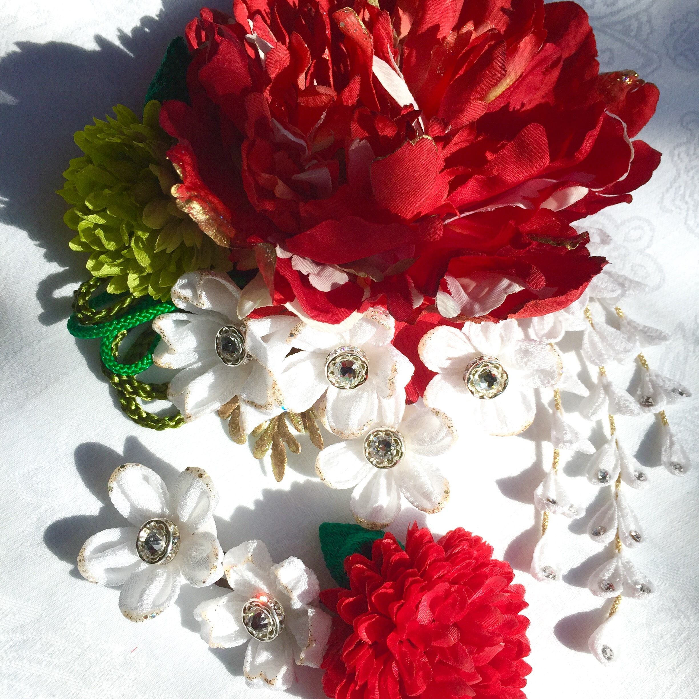 キラキラ✨成人式髪飾り-12レッドホワイトの商品説明