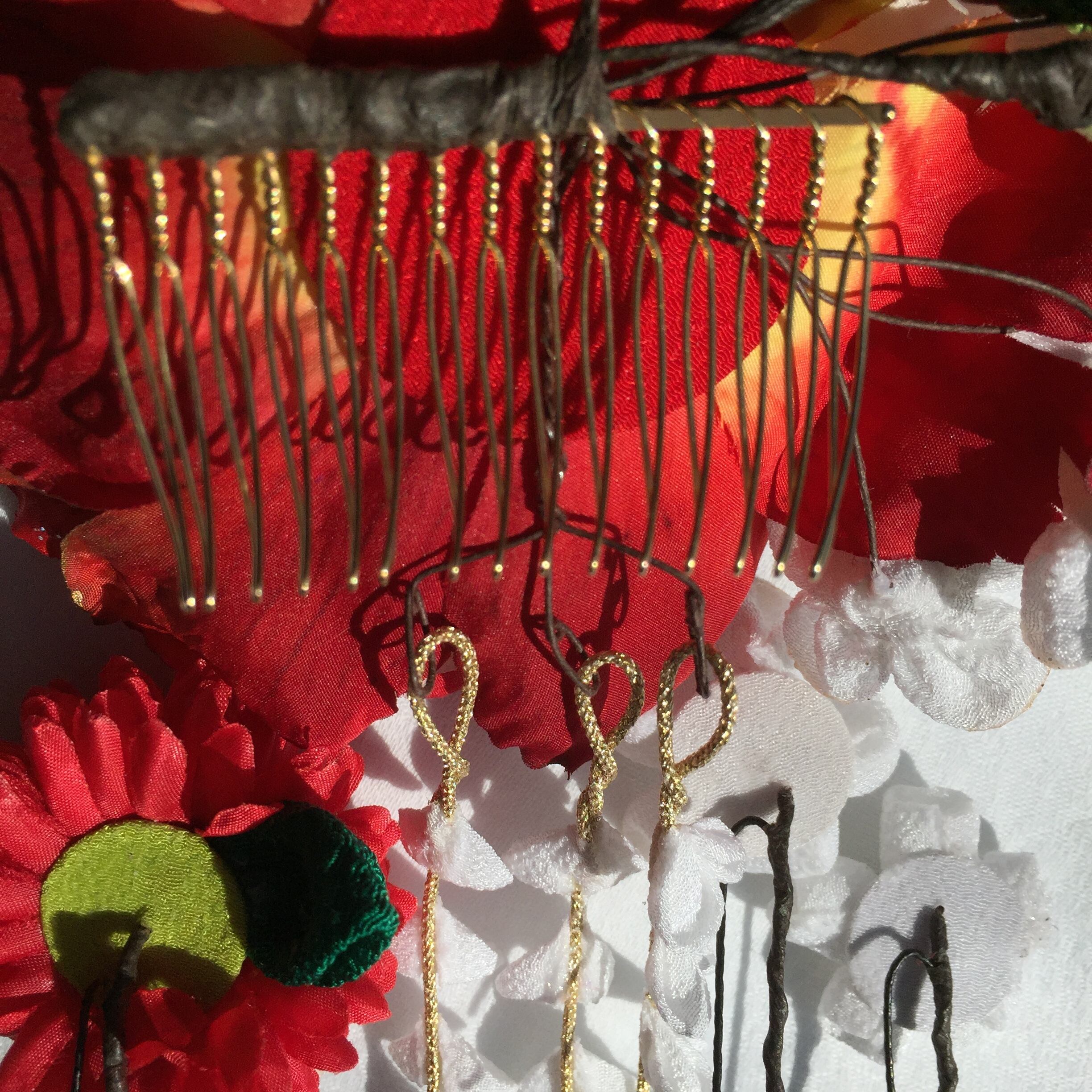 花びらも金ラメ付き髪飾りはいかがでしょうか