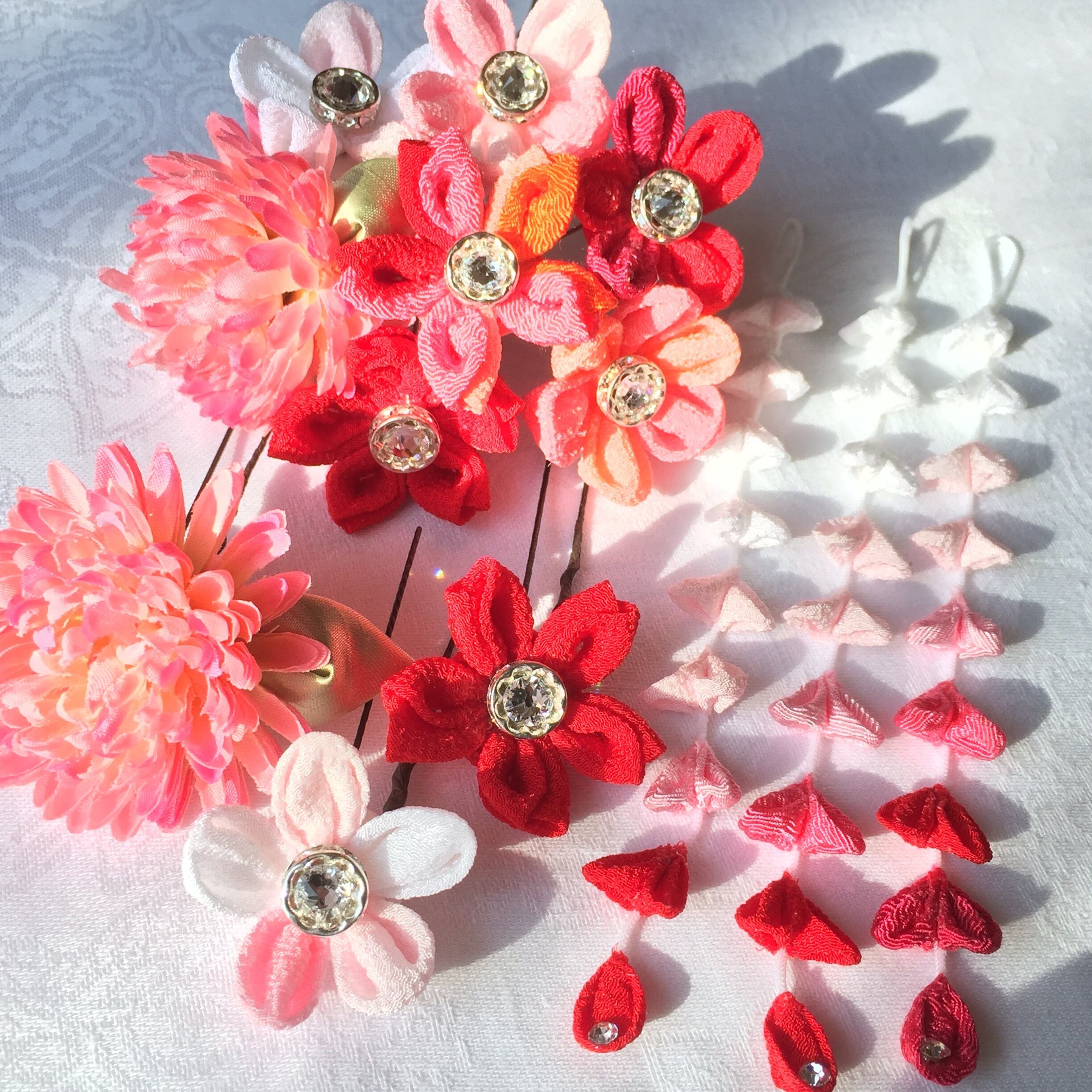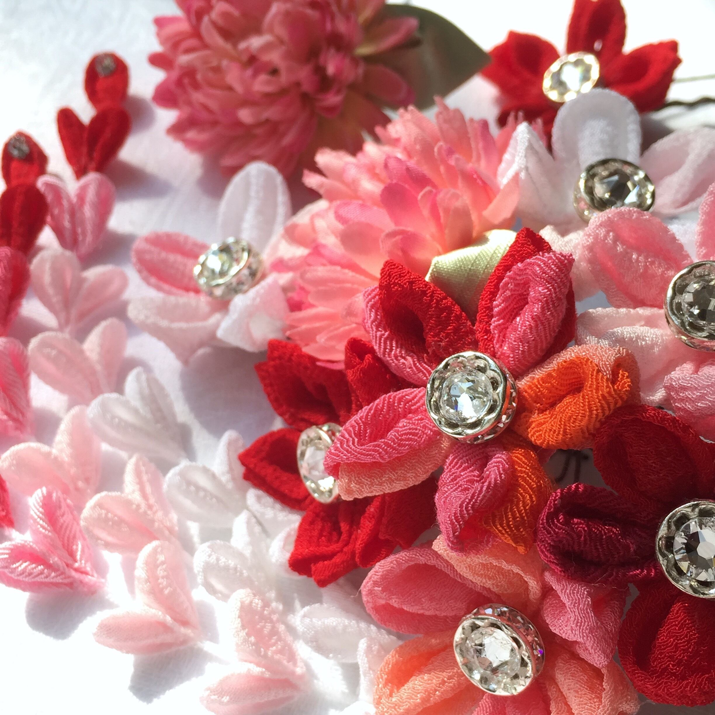 スワロフスキー成人式髪飾り-13レッドピンク簪の商品説明