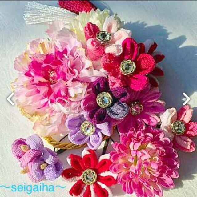 そんな想いで立体的な3Dのスワロフスキーを花芯にした、つまみ細工の髪飾りです