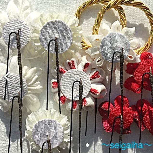 紅白2段つまみ細工 直径4.5cm