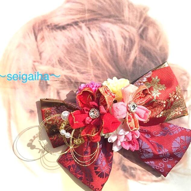 卒業式✨成人式 取り外しOK金襴リボンバレッタ-62の商品説明